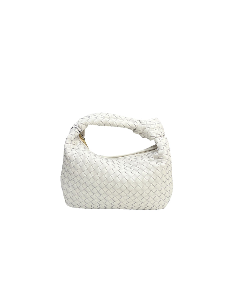 Borsetta in pelle intrecciata. È realizzata con pelle soffice intrecciata a mano e tinta al naturale, creando un look unico ed elegante. La pochette è pratica per portare con sé gli oggetti essenziali in modo comodo e organizzato.