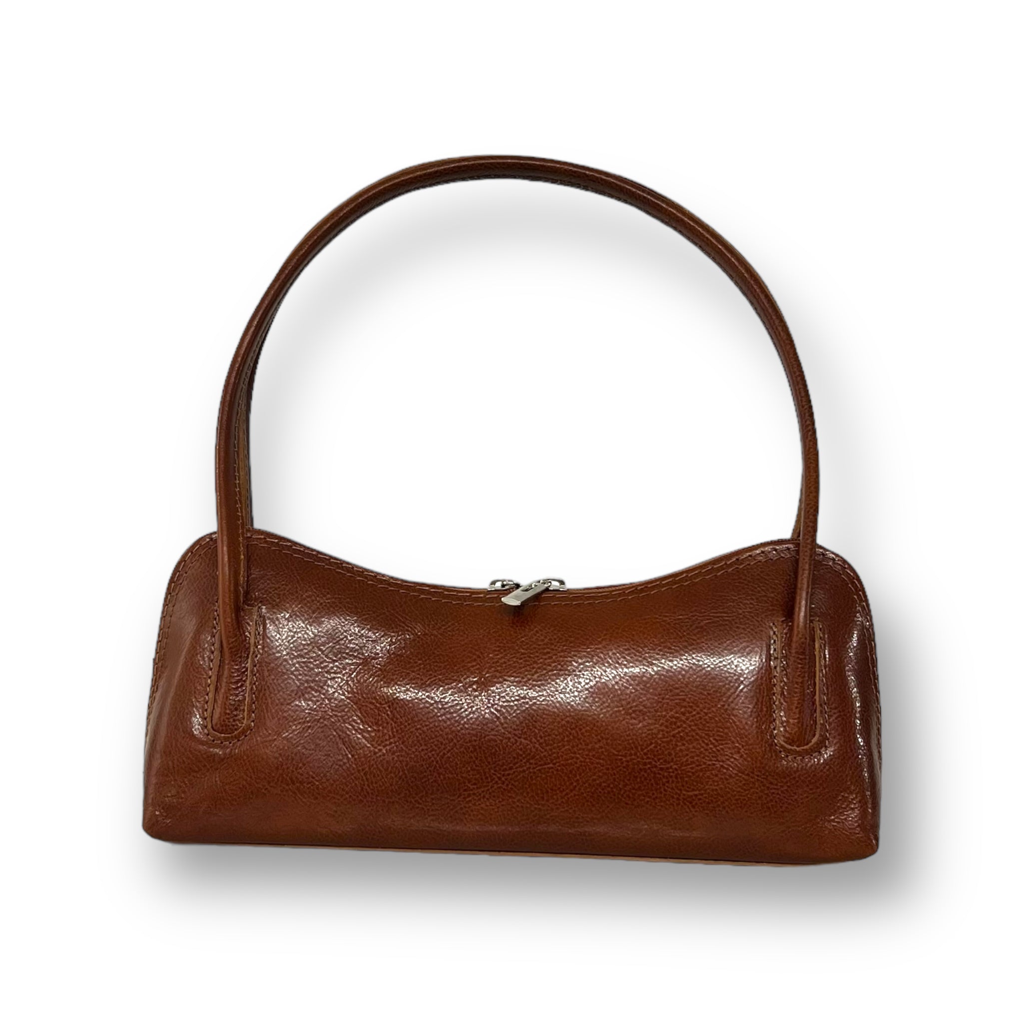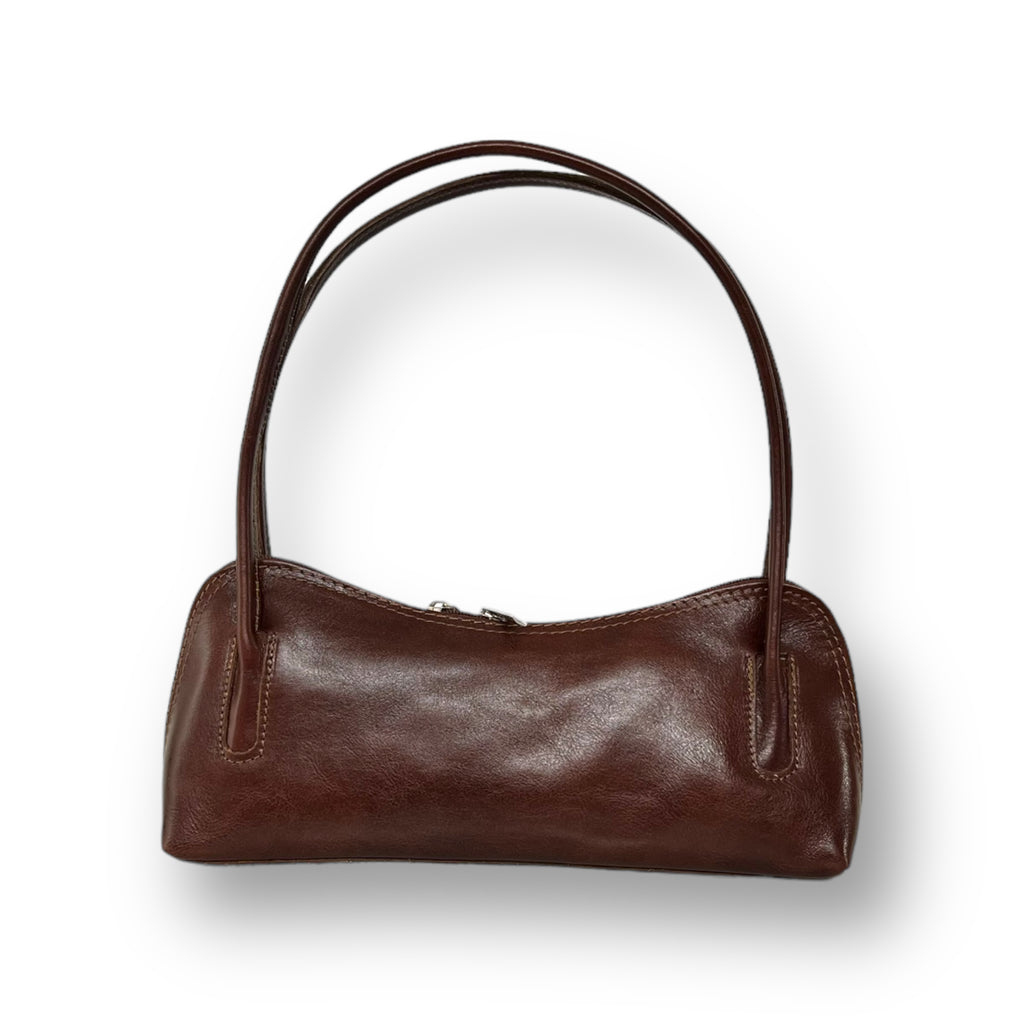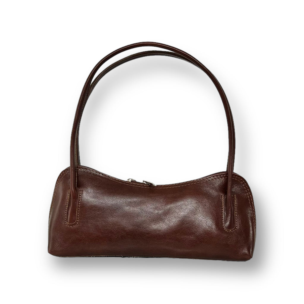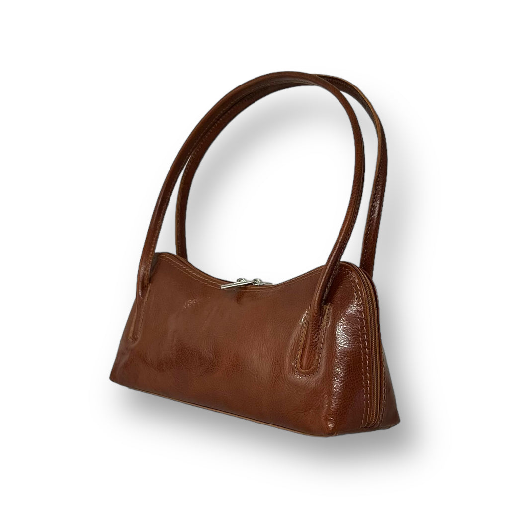 Borsa a spalla con un design elegante e compatto, ideale per un uso quotidiano. La borsa   è realizzata in pelle pieno fiore di alta qualità, conciata al vegetale e tamponata a mano per un look unico e resistente. La borsa offre spazio sufficiente per il trasporto dei tuoi oggetti essenziali e la tracolla regolabile ti consente di portarla comodamente a spalla o di croce.