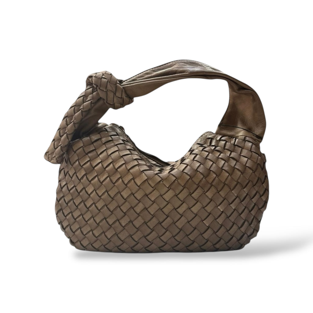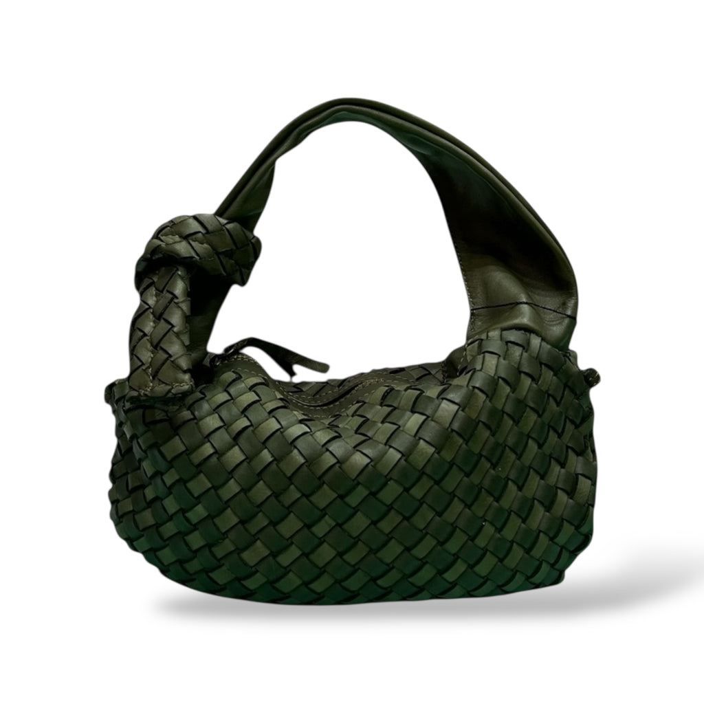 Porta la tua eleganza sportiva al prossimo livello con la nostra Borsa intrecciata con nodo. Realizzata a mano con pelle morbida lavata, presenta un elegante nodo e una comoda tracolla per il massimo comfort. Perfetta per ogni occasione.