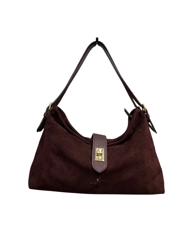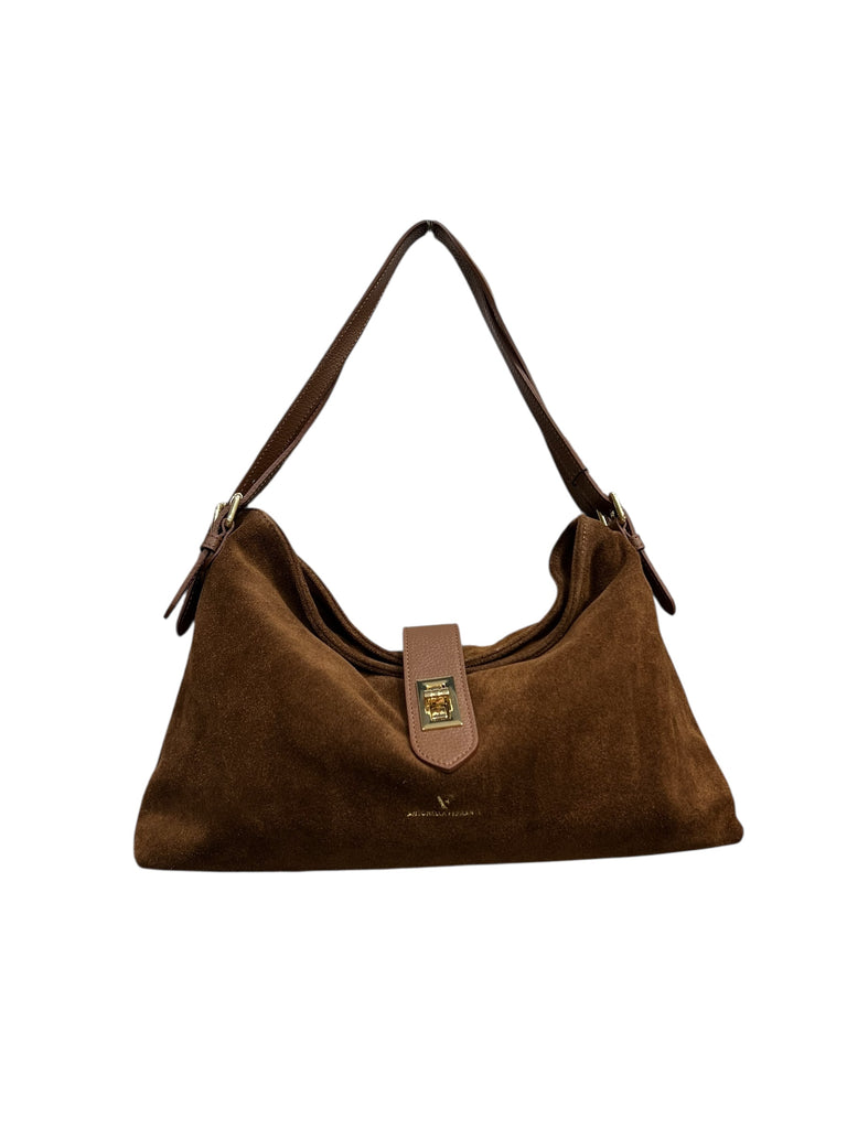 Borsa in camoscio con manici a spalla e tracolla regolabili è la soluzione ideale per un look elegante e pratico. Realizzata in morbida pelle di camoscio, leggera da portare e con chiusura centrale.Aggiungi stile e funzionalità al tuo outfit.