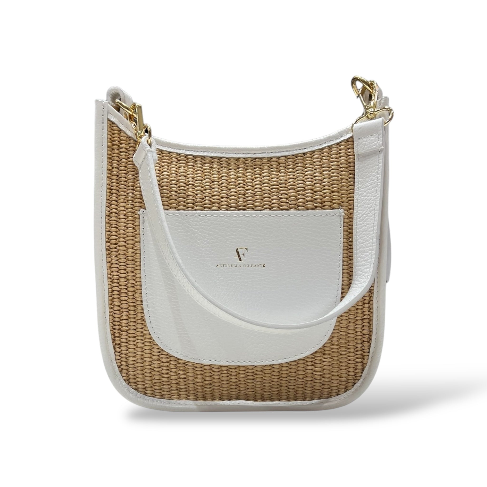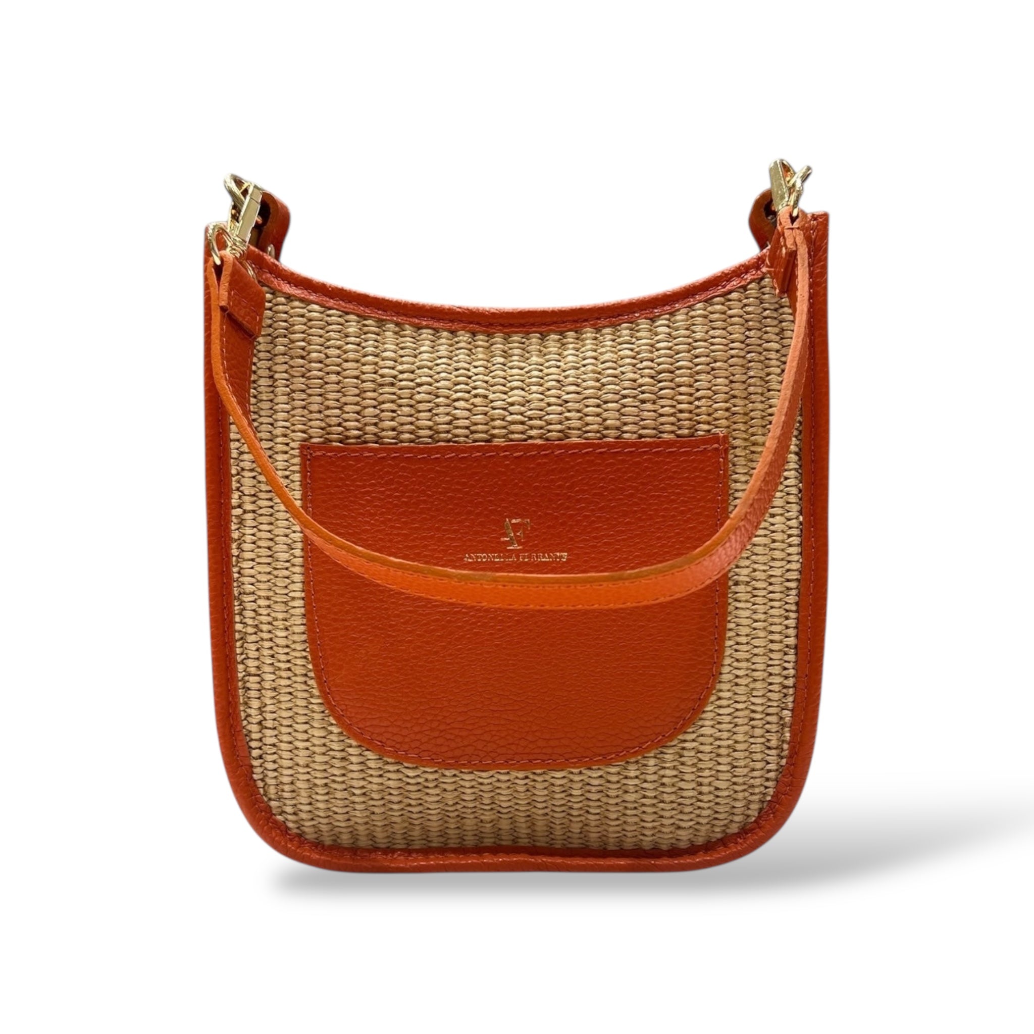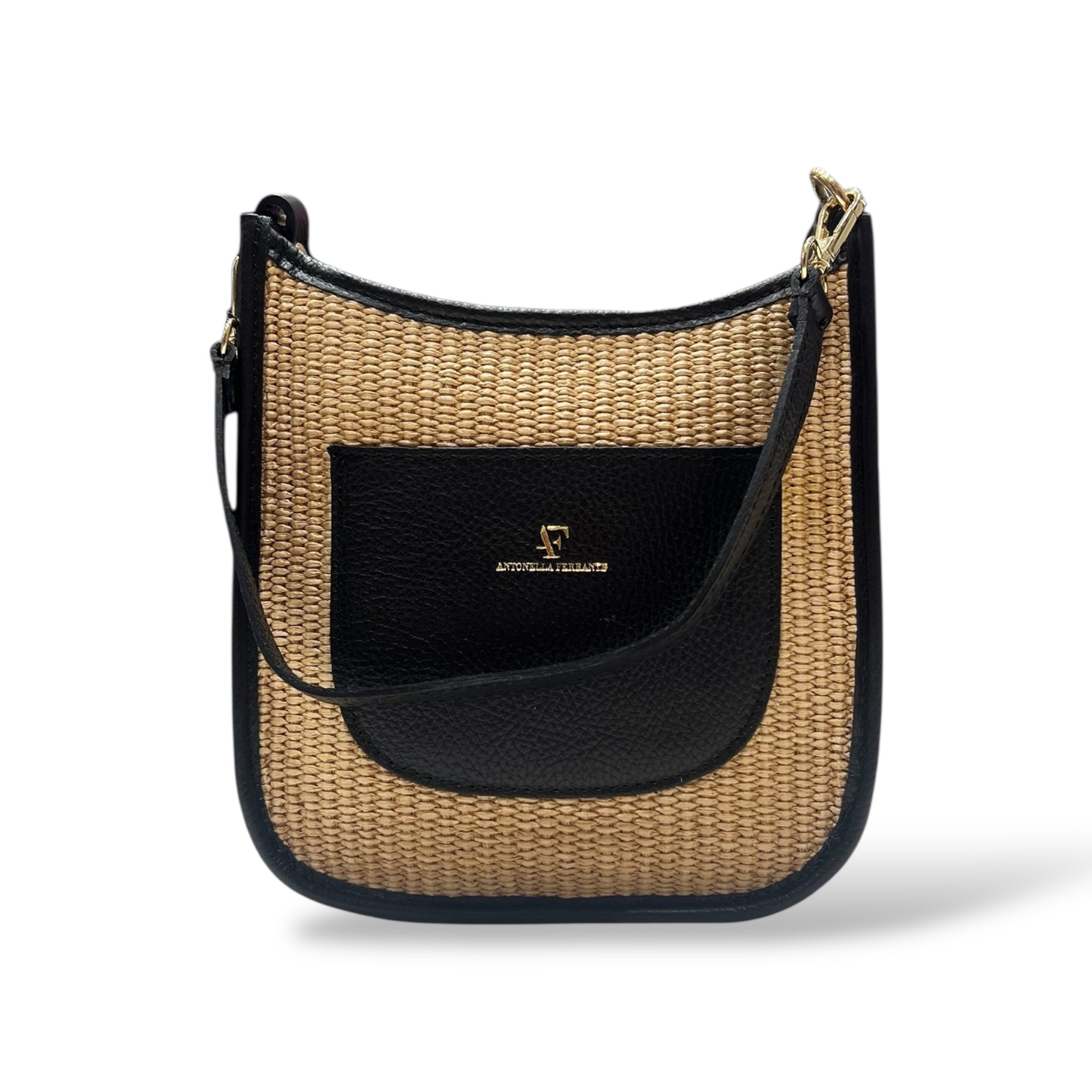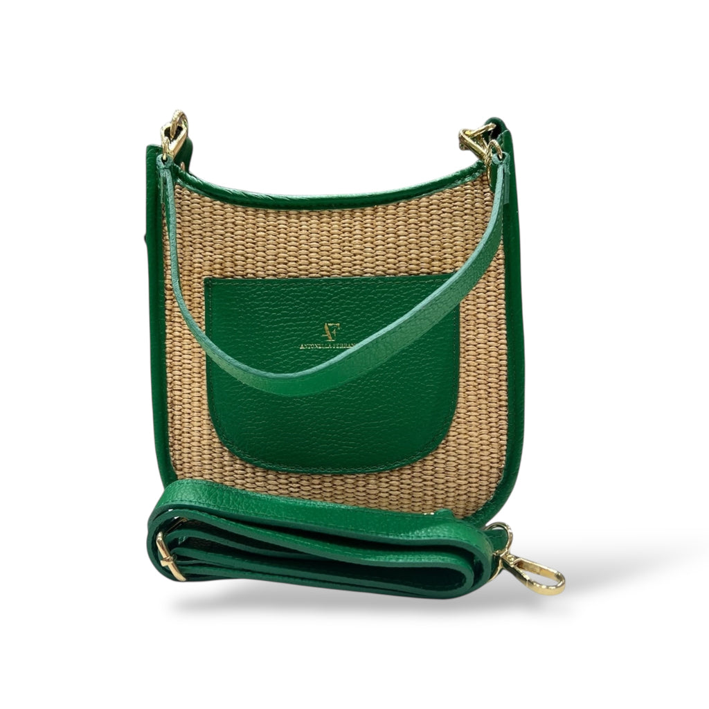 Questo prodotto è una borsa in Rafia e Pelle. La borsa ha una tracolla corta in pelle per un facile trasporto a spalla e una lunga.La Rafia è un dettaglio unico che rende questo prodotto un pezzo originale e distintivo.