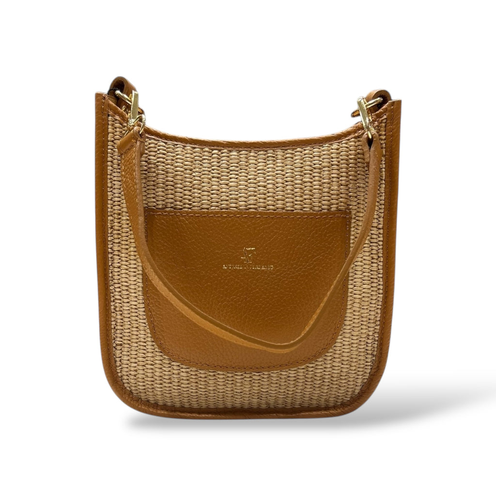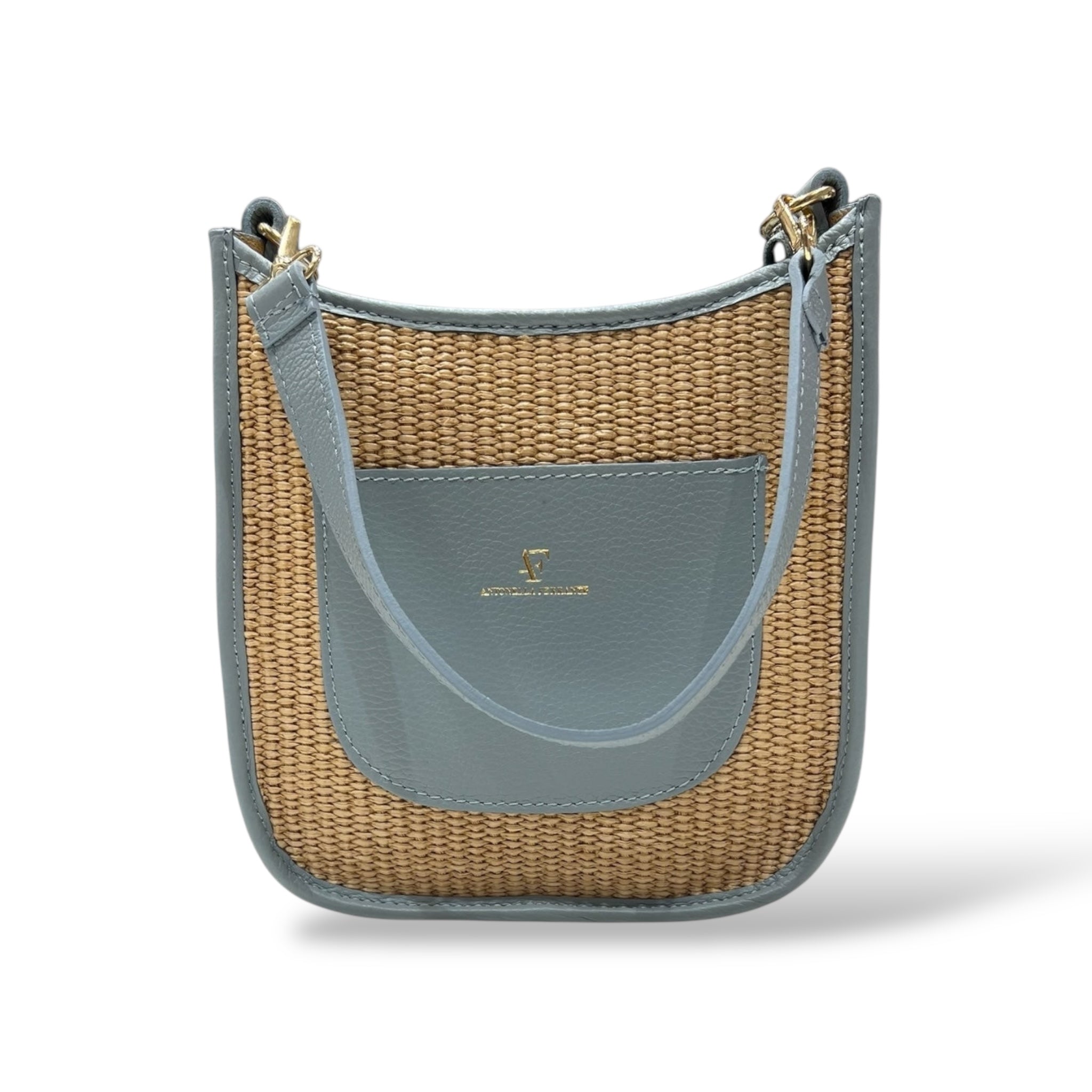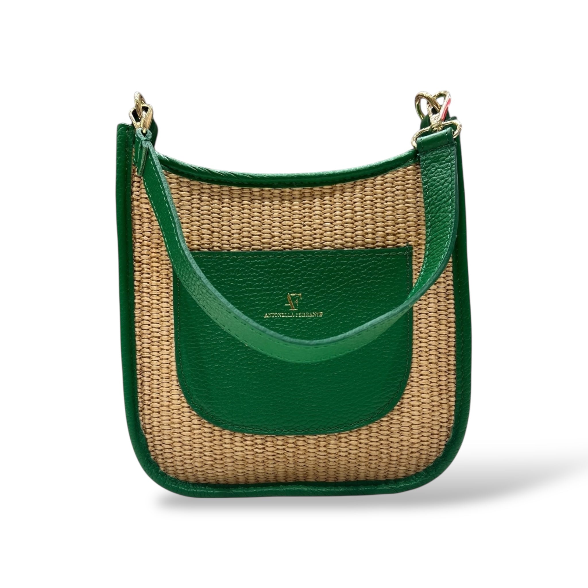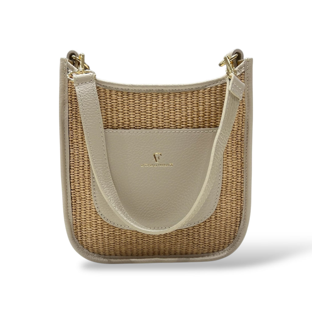 Questo prodotto è una borsa in Rafia e Pelle. La borsa ha una tracolla corta in pelle per un facile trasporto a spalla e una lunga.La Rafia è un dettaglio unico che rende questo prodotto un pezzo originale e distintivo.