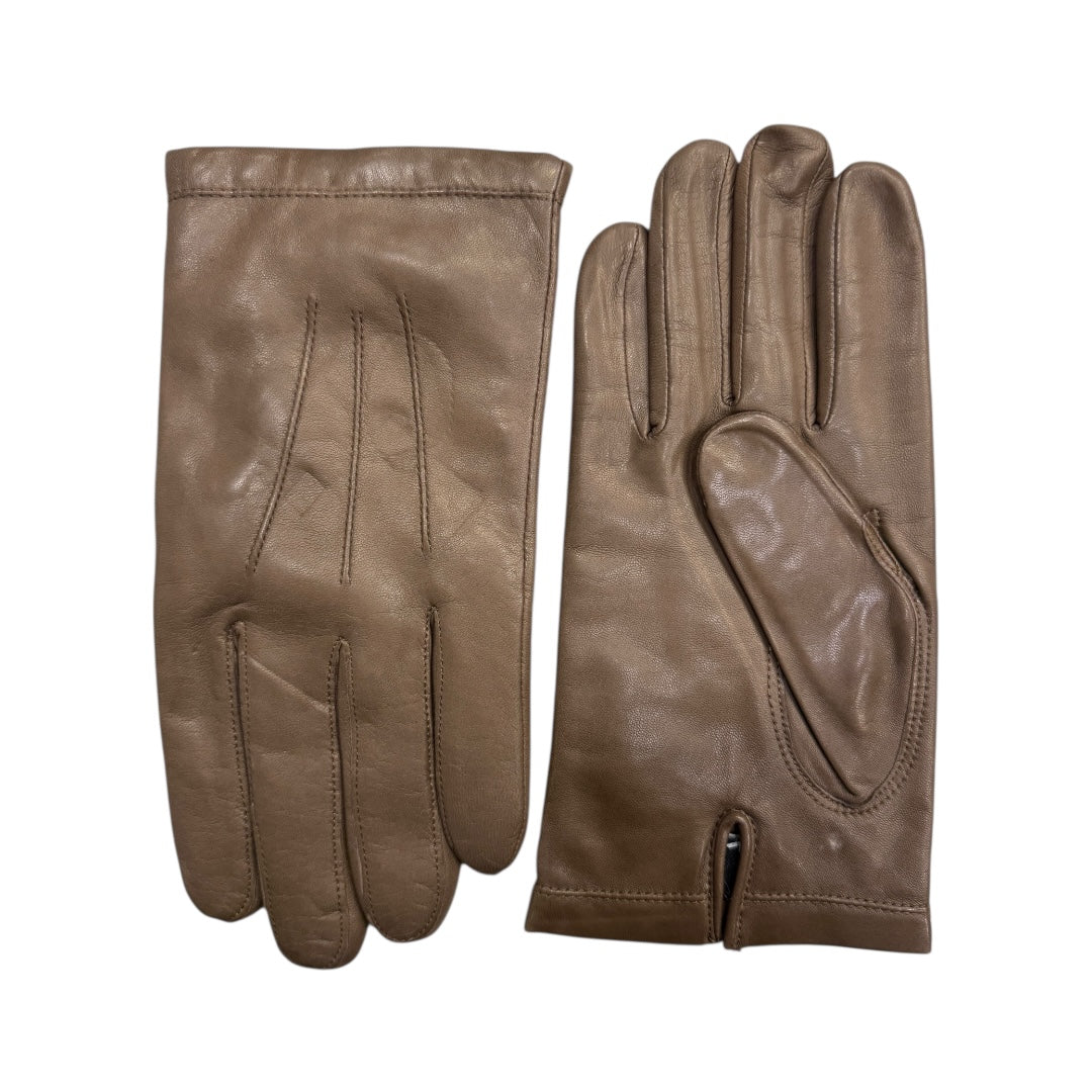 Guanto in pelle esterno che è stato foderato all'interno con tessuto di cashmere. Il cashmere è un tipo di lana pregiata che è morbida al tatto e offre un'ottima traspirabilità, mantenendo al caldo le mani. La pelle esterna del guanto è resistente e duratura, proteggendo le mani dalle intemperie.