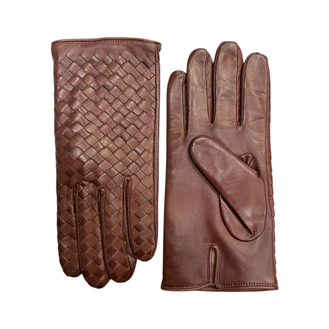 Questo prodotto è un guanto in pelle intrecciata, foderato all'interno con cashmere per offrire comfort e calore. La pelle intrecciata conferisce un look elegante e sofisticato, mentre la fodera in cashmere garantisce morbidezza e calore durante le giornate fredde.